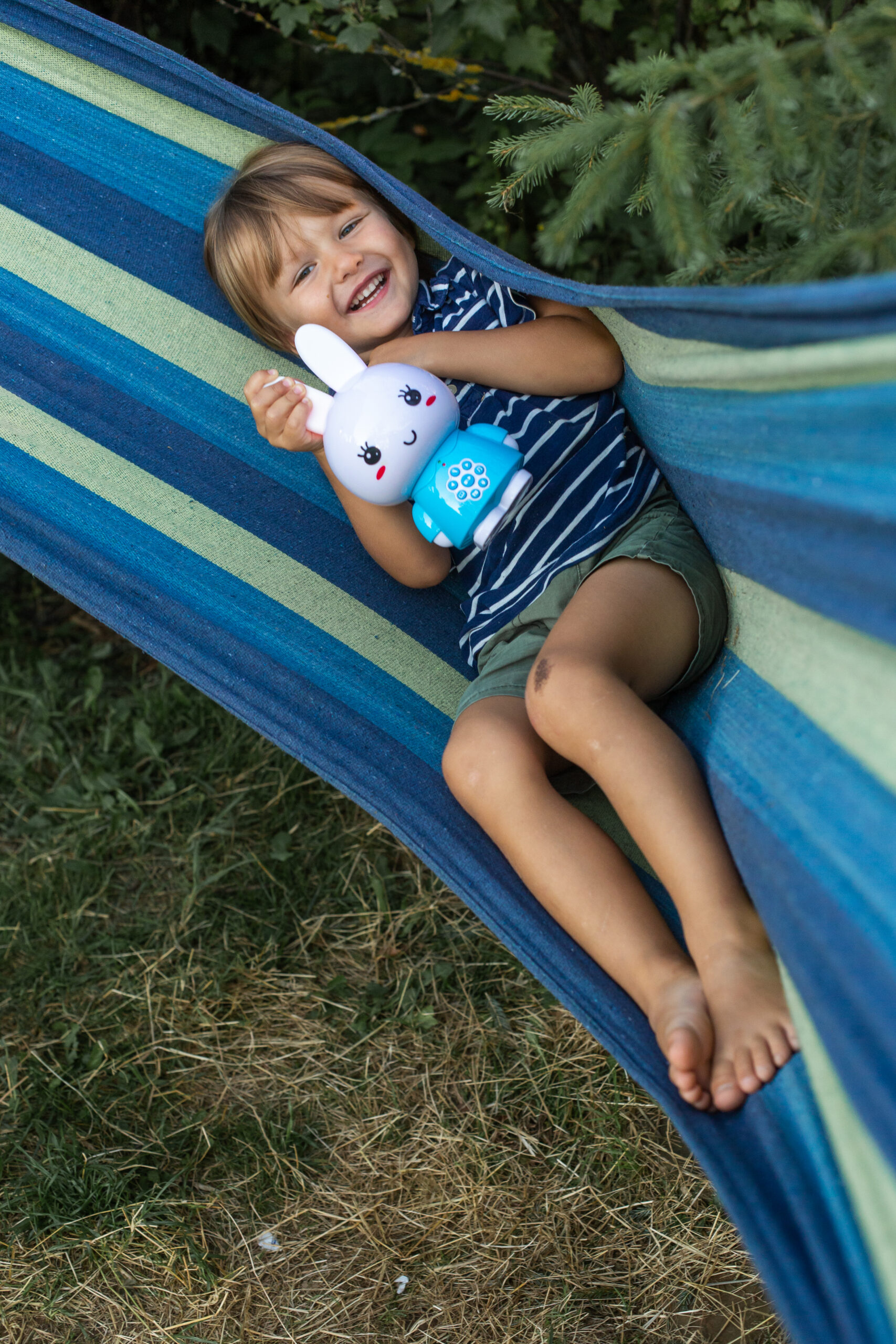 Poznaj Alilo Honey Bunny G6 – interaktywnego, wielofunkcyjnego króliczka, który łączy w sobie odtwarzacz mp3, dyktafon oraz przyjemną lampkę nocną, tworząc idealne rozwiązanie na każdą porę dnia i nocy. Alilo Honey Bunny G6 czyta bajki na dobranoc, śpiewa piosenki i może nagrywać głos, np. rodzica, tworząc w ten sposób niepowtarzalną audiotekę dla swojego malucha. Jest bardzo prosty w obsłudze, ładuje i łączy się z komputerem poprzez kabel USB, jego przyciski można zablokować, a odtwarzanie przerwać i wznowić w każdej chwili.