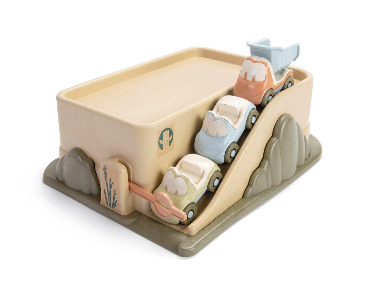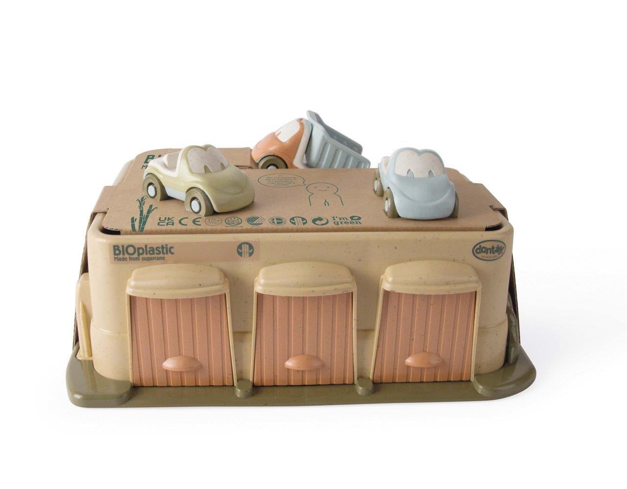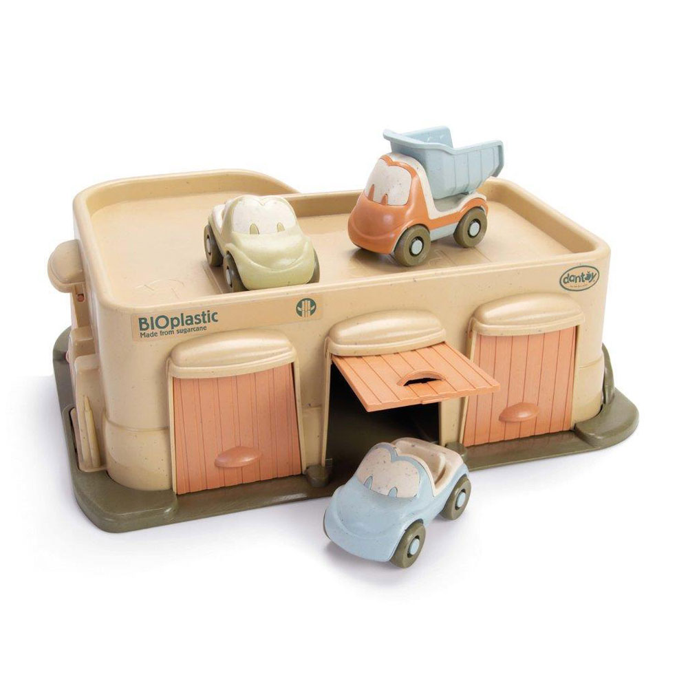 Garaż firmy Dantoy został wykonany z bioplastiku pochodzącego z odnawialnej trzciny cukrowej. Wyposażony w zjeżdżalnię, miejsca parkingowe na dachu, otwierane bramy, dystrybutory paliwa oraz podnoszony szlaban. W zestawie 3 samochody.