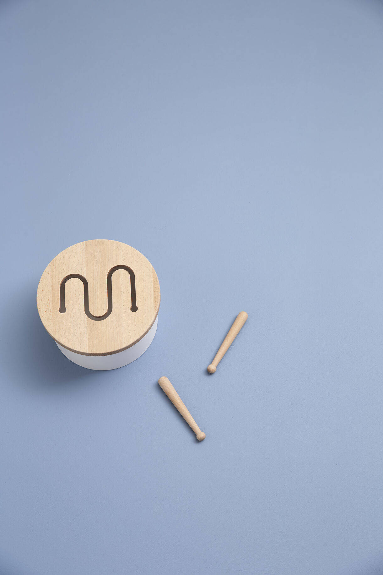 Bębenek wykonano z wysokiej jakości sklejki lipowej, pokrywka jest z drewna bukowego, a pałeczki z drewna schima. Wszystkie materiały pochodzą z drewna certyfikowanego FSC, co oznacza, że produkt jest przyjazny środowisku i bezpieczny dla dzieci. - Wymiary dostosowane do małych rączek