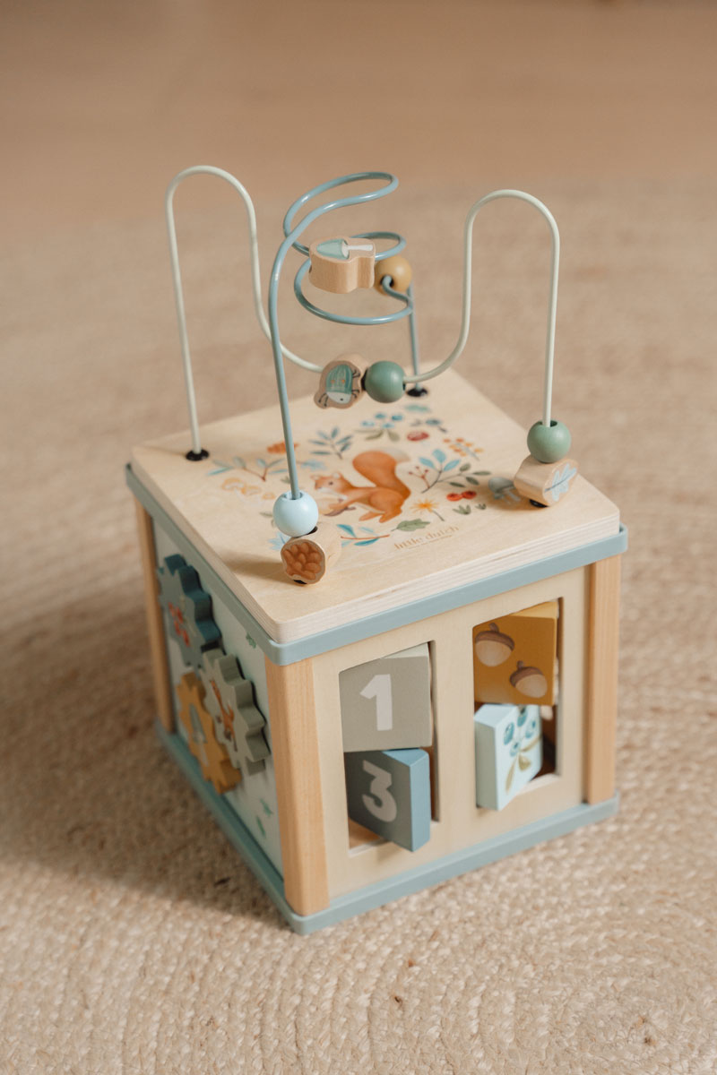 Kostka Aktywizująca „Forest Friends”od Little Dutch to wielofunkcyjna zabawka edukacyjna, która stymuluje rozwój motoryczny oraz poznawczy dzieci. Wykonana z wysokiej jakości, bezpiecznych materiałów, w tym drewna certyfikowanego FSC, jest przyjazna środowisku.