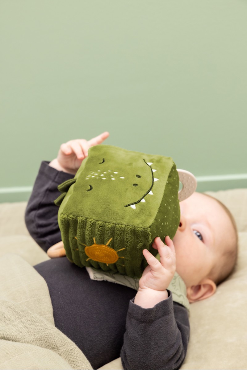 Miękka, elastyczna i pełna fascynujących funkcji, ta przyjazna kostka aktywności zapewni maluszkowi godziny zabawy i odkryć. Kostka oferuje różne tekstury, łapki i ogon, lusterko, szeleszczące wnętrze oraz drewniany i silikonowy pierścień – idealne do gryzienia i noszenia.