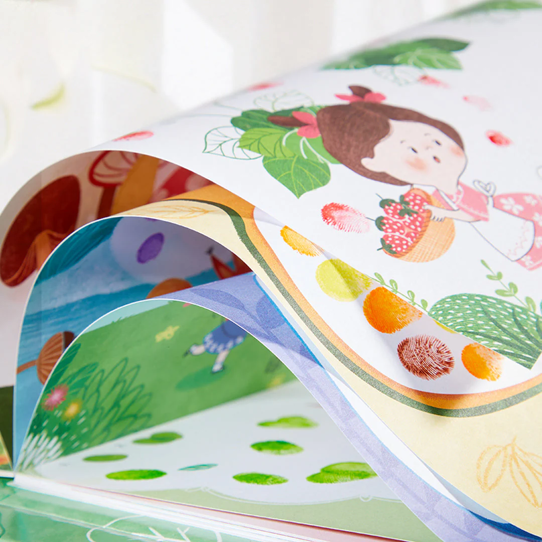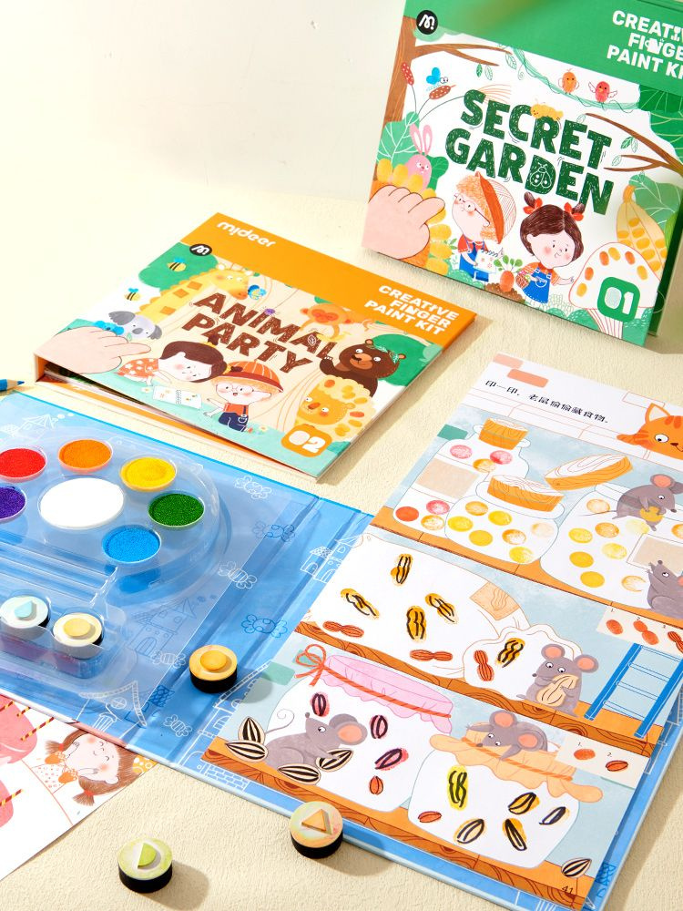 Zestaw do malowania palcami to świetny wybór dla każdego początkującego artysty i dla każdej początkującej artystki. Każda ze stron została zaprojektowana tak, aby można było ją łatwo otworzyć i skupić się tylko na tworzeniu. Obrazki nawiązujące do roślin, zwierząt i jedzenia świetnie wpasują się w poznawanie codzienności przez najmłodszych sztukmistrzów. Po zabawie, doprowadzenie artysty do porządku, na szczęście jest bardzo proste.
