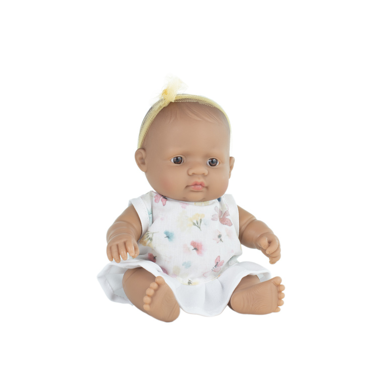 - Lalka dziewczynka Hiszpański posiada śniadą skórę i brązowe oczy