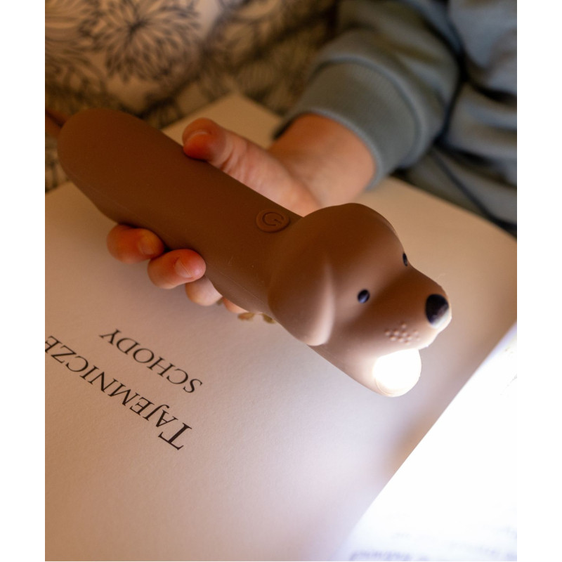 Funkcjonalna i gotowa na każdą przygodę! Latarka w kształcie pieska od Rabbit & Friends to idealny towarzysz wieczornych zabaw, bajkowych opowieści i nocnych wypraw po domu. Wykonana z miękkiego, przyjemnego w dotyku silikonu, jest bezpieczna i wygodna dla dziecięcych rączek.