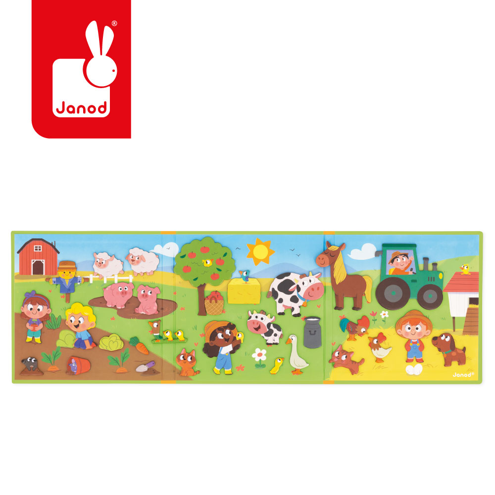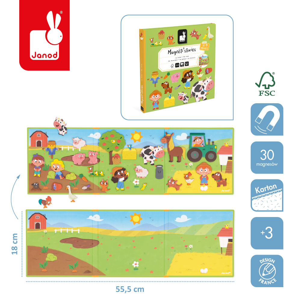 Magnetyczna układanka Farma francuskiej firmy Janod to kreatywna i rozwijająca wyobraźnię zabawka. Układanka wspiera również koordynację ruchową oraz ćwiczy precyzję dłoni. Praktyczna tablica służy jako tło, na którym dziecko może tworzyć własne scenki z farmy, co daje nieograniczone możliwości twórcze i zapewnia wielogodzinną zabawę. Układanka magnetyczna jest idealna na długie podróże samochodem, pociągiem czy samolotem.
