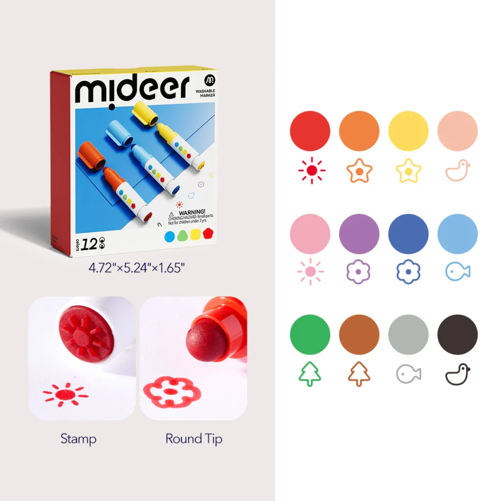 Zmywalne markery ze stemplami Mideer 12 kolorów
