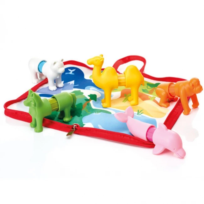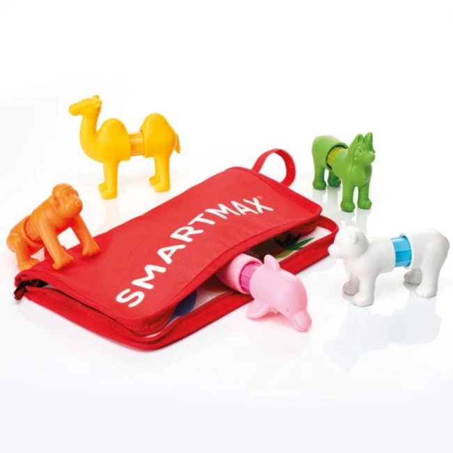 Wyrusz w podróż po świecie zwierząt z zestawem SmartMax My First Animals Around the World! Ten barwny zestaw magnetyczny został stworzony z myślą o dzieciach w wieku od 1 do 5 lat, aby wspierać ich rozwój poprzez zabawę, kreatywne budowanie i odkrywanie. Duże, miękkie elementy są idealne dla małych rączek – dzieci mogą łatwo łączyć części, tworząc znane zwierzęta lub wymyślać własne, zabawne kombinacje! Od tropikalnych lasów, przez sawanny, po polarne regiony i wiejskie gospodarstwa – maluchy poznają różnorodne środowiska, rozwijając przy tym zdolności manualne i podstawy nauk ścisłych. Zestaw zawiera matę edukacyjną z ilustracjami siedlisk zwierząt, która po złożeniu zmienia się w praktyczną torbę do przenoszenia. Magnesy SmartMax są mocne, trwałe i bezpieczne – zaprojektowane specjalnie z myślą o najmłodszych.