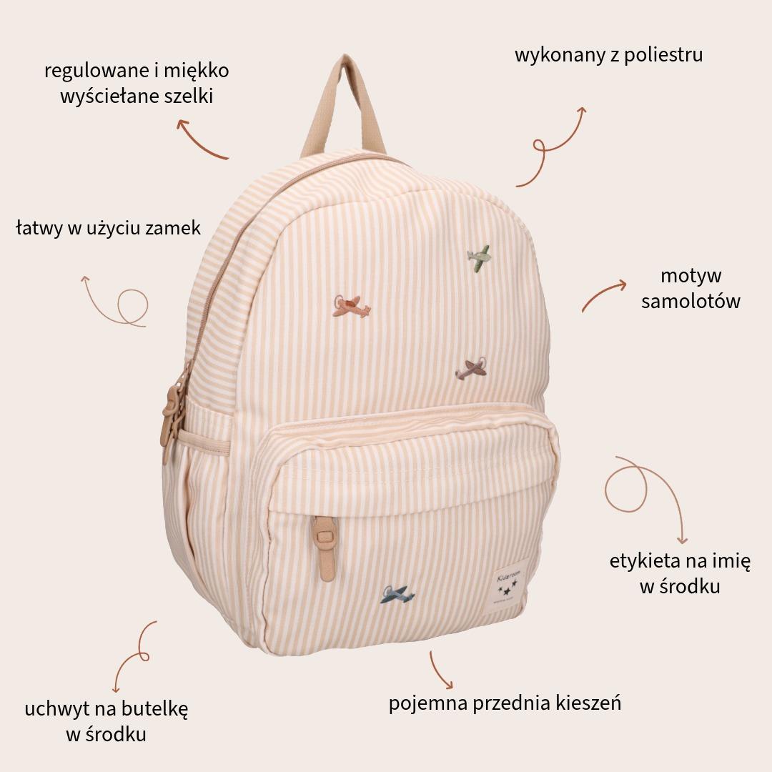 Plecak z kolekcji Kidzroom Nostalgia to doskonały wybór dla starszaków. Większy rozmiar z łatwością mieści format A4, dzięki czemu świetnie sprawdzi się także dla nieco starszych dzieci.