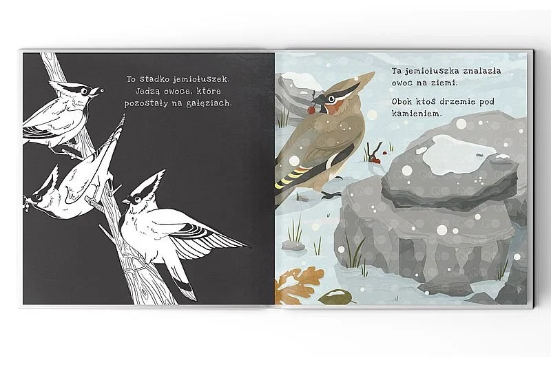 Otwórz drzwi do magicznego, zimowego świata pełnego niesamowitych odkryć! Każda strona tej książki to nowa przygoda, gdzie las zimą przestaje być jedynie mroźnym i cichym miejscem. Podświetlaj latarką kolejne strony, a zobaczysz ślady życia i zwierzęcej aktywności, które tętnią pod białym płaszczem śniegu.