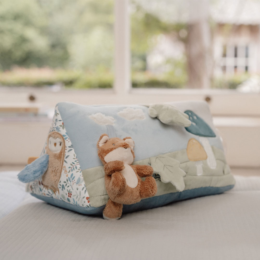 Trójkąt edukacyjny Forest Friends od marki Little Dutch to zabawka edukacyjna zaprojektowana z myślą o rozwijaniu umiejętności motorycznych, sensorycznych i poznawczych u małych dzieci. Jest częścią kolekcji „Forest Friends”, inspirowanej naturą i leśnymi zwierzętami. Zabawka posiada różnorodne elementy, takie jak lusterko, szeleszczące powierzchnie, wypustki i metki, które stymulują zmysły malucha i zachęcają do odkrywania nowych tekstur i dźwięków.