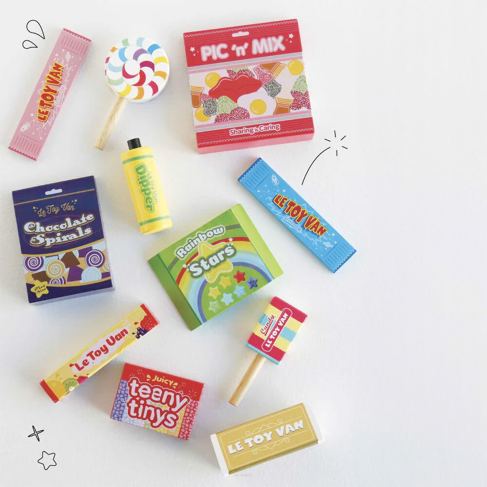 Zapraszamy do świata słodkich przyjemności – bez cukru! Zestaw drewnianych słodyczy od Le Toy Van to doskonała zabawka do zabawy w sklep.